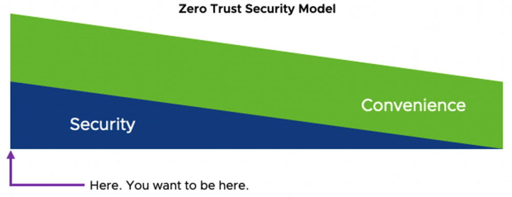 Trust no one by default, and always verify. Verify every user and device before granting access to a resource. Striking a balance between security and convenience can be challenging, but zero trust provides a solution to the traditional security-convenience trade off.